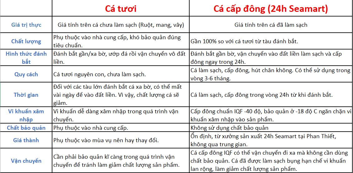 - Tại 24hSeamart, đánh bắt hải sản + làm sạch + cấp đông đều được làm trong 24h nên hải sản luôn giữ được trên 90% độ tươi ngon so với mặt hàng tươi sống.