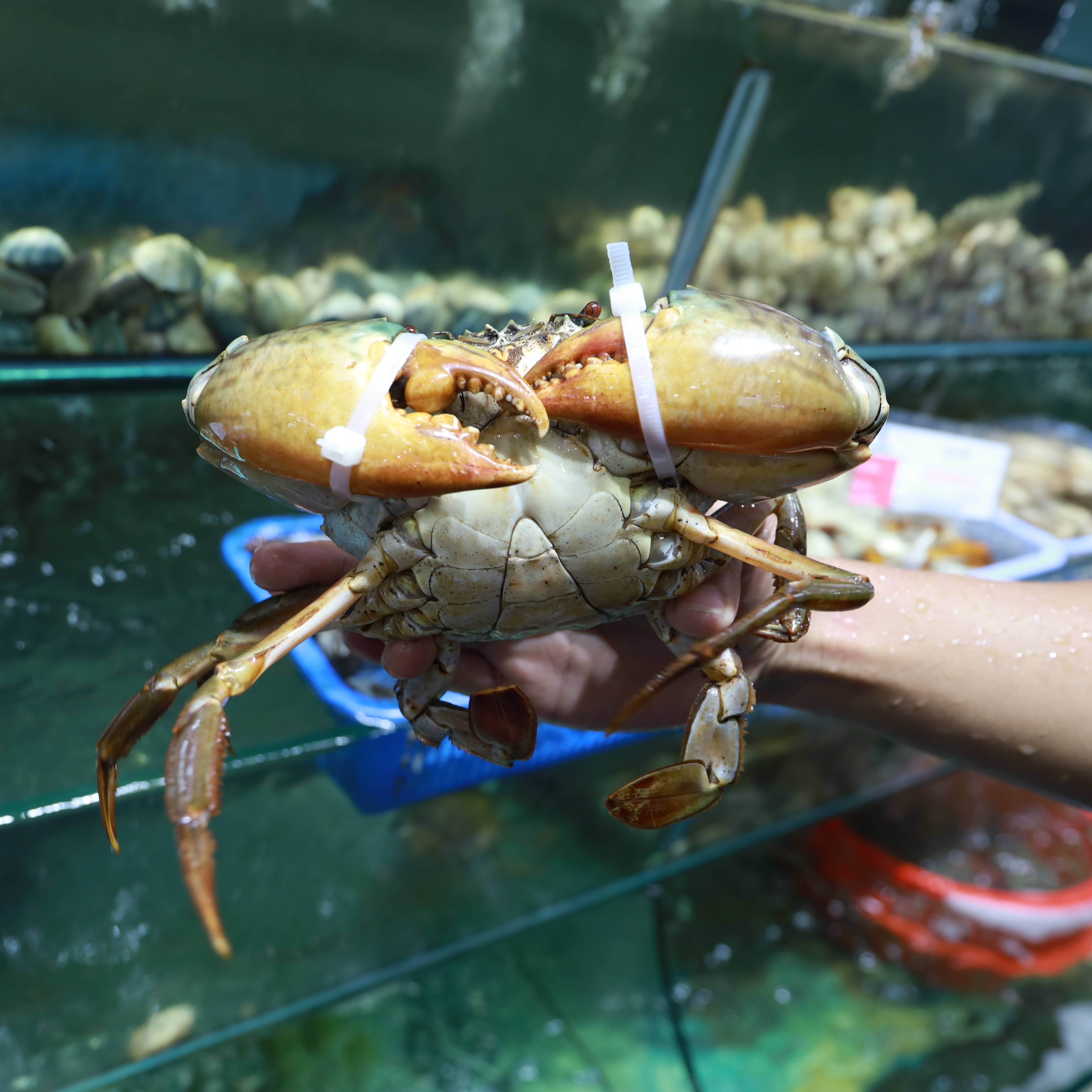 - 24hSeamart không sử dụng dây buộc nhằm an gian trọng lượng của cua.