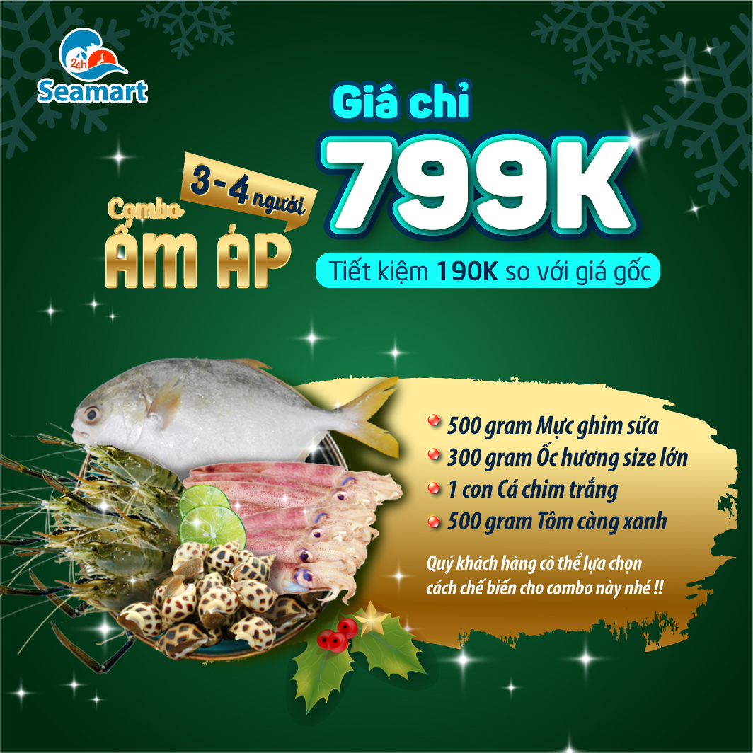 Một mùa Noel lại đến, bạn đã có kế hoạc gì cho khoảng thời gian lạnh nhất năm chưa ?? Hãy để 24hSeamart đồng hành cùng bạn trong mùa Noel năm nay với chuỗi combo món ăn đặc biệt vừa mới ra lò luôn nhé !!