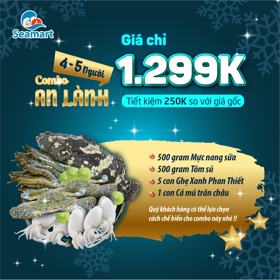4 "Combo Hải Sản" đa dạng các món, tha hồ lựa chọn. Chương trình combo giáng sinh đặc biệt diễn ra từ ngày 13/12 - 26/12/2021. Nhanh tay order nha khách ơi.