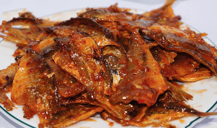 Khô cá chỉ vàng rim ngọt có hương vị đậm đà, màu sắc hấp dẫn vị mặn mặn ngọt ngọt dễ chịu ăn cùng với cơm nóng rất ngon miệng.