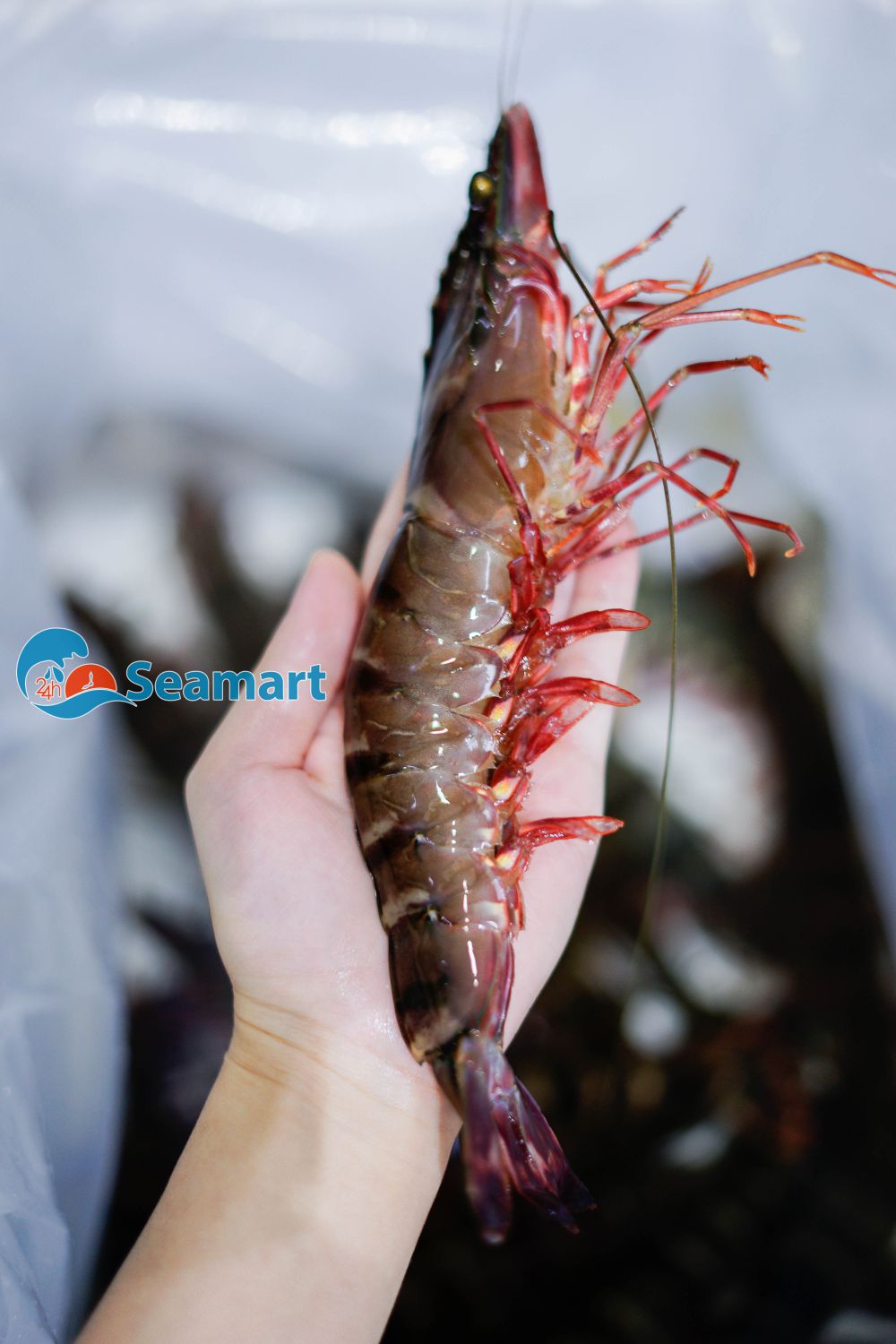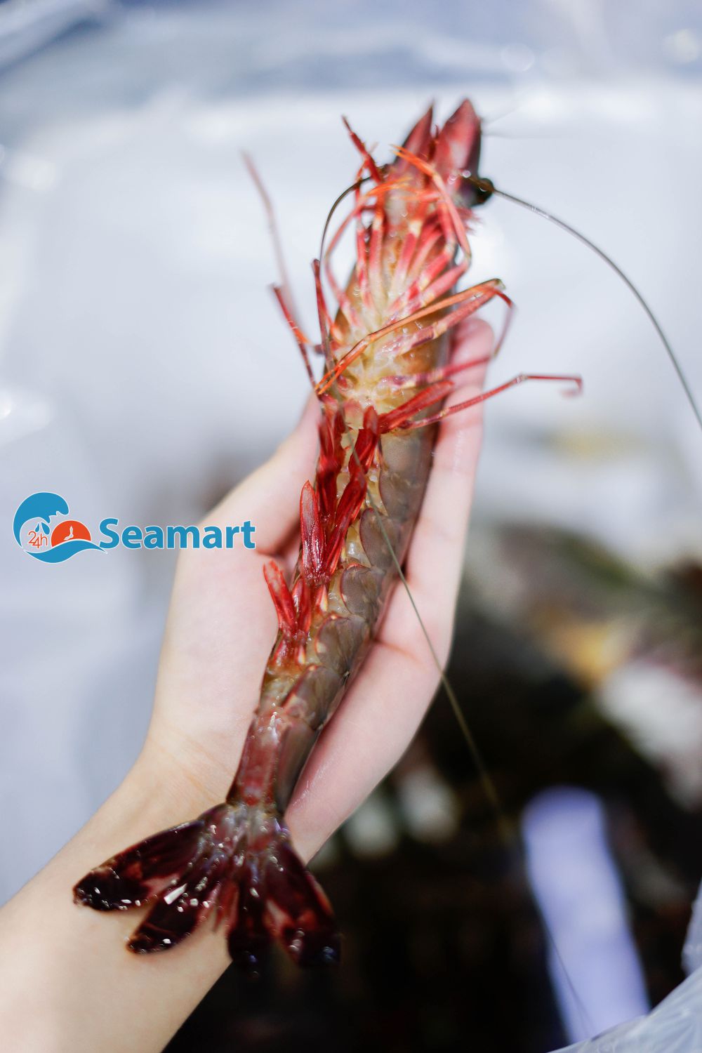 - Tôm được chọn lọc kỹ càng. Nhập sống từ vùng biển Bình Thuận tới 24hSeamart