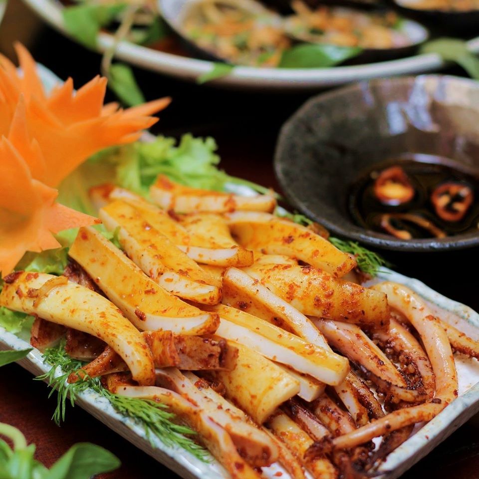 Hình ảnh con mực từ màu trắng đục dần chuyển sang vàng ươm đẹp mắt không biết đã kích thích vị giác của biết bao người. Món này đặc biệt khi thưởng thức cùng với một chút tương ớt sẽ càng khó cưỡng hơn.